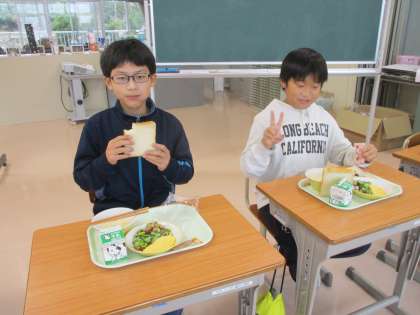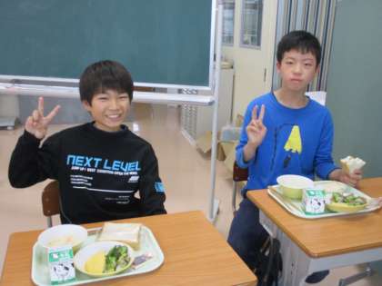 場所を変えるだけで、いつもより楽しい給食の時間になりました。