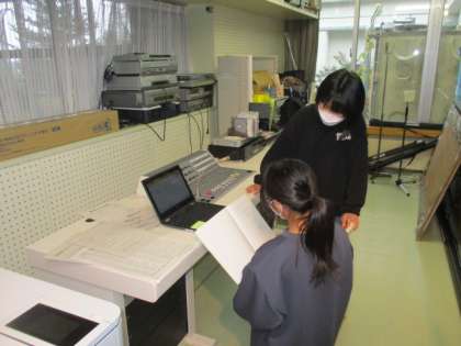 今日は、誕生日の友達を紹介する放送をする場面で、誕生日やインタビューの内容を間違えないようにクロムブックを見ながら放送しました。