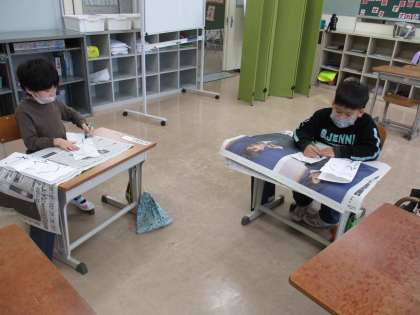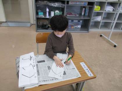 書き初めの練習(あおぞら2組1年生)