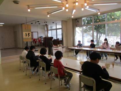 先週に引き続き、地域の池田先生と公民館の方がお世話してくださり、2回目の茶道教室が行われました。