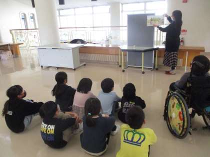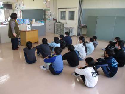 下学年は「あったかいな」「こうくんとちいさなゆきだるま」「いっしょなら」の3冊、上学年は「みかん」「おにはそと」「はるのおとがきこえるよ」の3冊の本を聞かせていただきました。どれも、あたたかい気持ちになるお話でした。