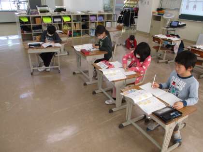 1年生は、計算のしかたを自分たちで確かめ合いながら、問題を進めました。