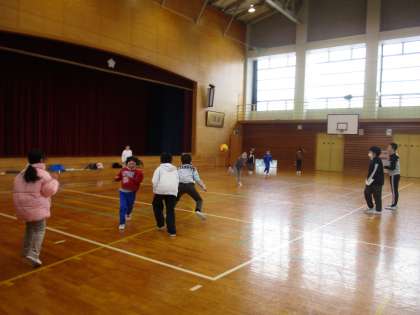外は雪がちらついていましたが、子供たちは寒さに負けず元気に体を動かしていました。