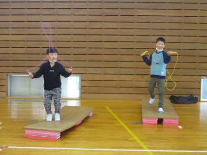 体育館ではドッジボールをする子供たちや、鉄棒や縄跳びの練習をする子供たちがいました。