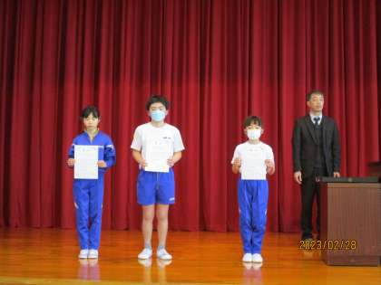 2月28日にアルペン競技・書き初め大会・私の身近な自然展の受賞伝達式が行われました。