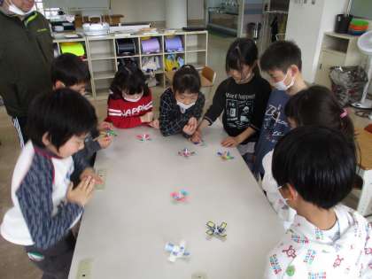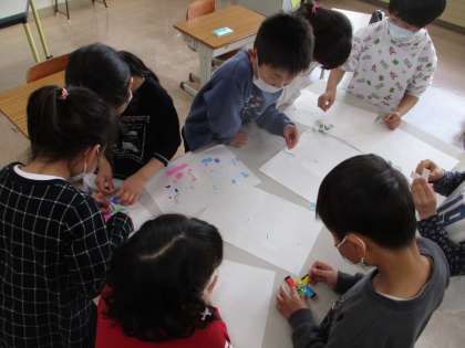 1・2年 こまづくり 公開日 2023/03/24 更新日 2023/03/24 学校 牛乳パックでこまを作りました。 いろいろな色を塗って組み立てました。教え合いながら作り、みんなで楽しく回しました。