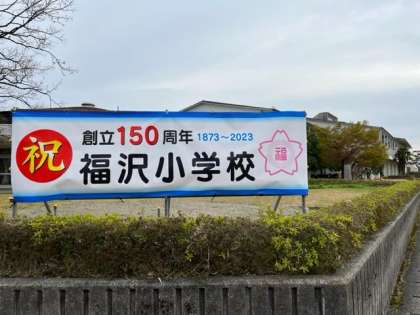新年度(創立150周年) 公開日 2023/04/05 更新日 2023/04/05 学校 いよいよ新年度が始まります。 校門には、創立150周年記念の横断幕が設置されました。 ふたば会のみなさま、ありがとうございます。 令和5年度も福沢小学校、福沢っ子、がんばるぞ!