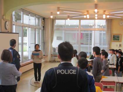 富山南警察署・南交通安全協会・交通指導員の方々に来て頂き、交通安全教室を開催しました。