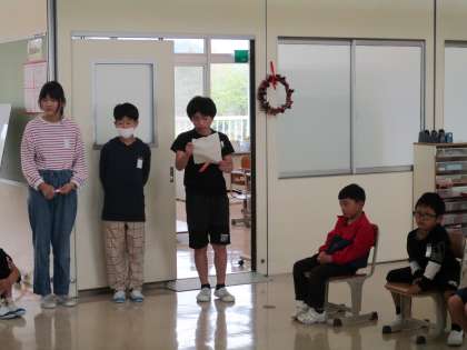 上学年が中心となって企画・運営した入学おめでとう集会が、今日開催されました。