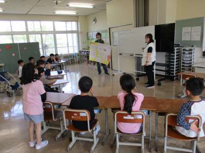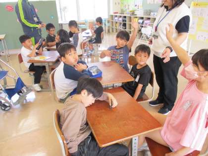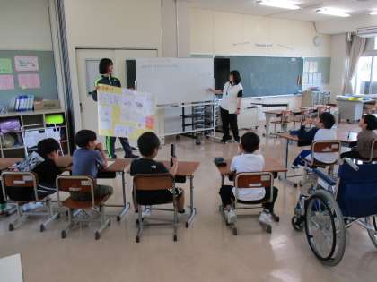 1年生は生活科の学習で学校たんけんをします。2年生と相談して、学校のどこを見に行くかを話し合いました。