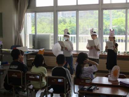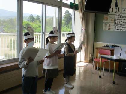 2・3年生 学習参観 公開日 2023/04/22 更新日 2023/04/22 学校 4月22日(土) 国語科「ふきのとう」「きつつきの商売」の学習をしました。2年生は「ふきのとう」を読み、動きながら場面の様子を考え、音読しました。3年生は「きつつきの商売」を読み、叙述から登場人物の気持ち、場面の様子を考えながら音読をしました。最後に互いの学年の音読を聞き合い、感想を伝え合いました。来週には1年生の前で発表する予定です。
