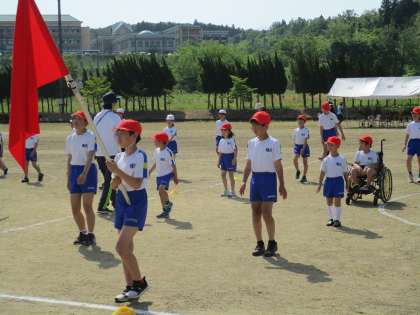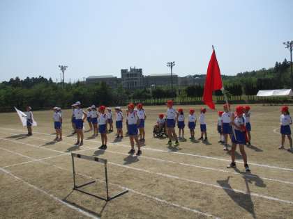 運動会に向けて予行練習を行いました。暑い日になったので、テントで休んだり水分補給をしながら、集中して行いました。子供たちは、全体の動きや競技中の係の役割の確認しながらがんばって取り組んでいました。
