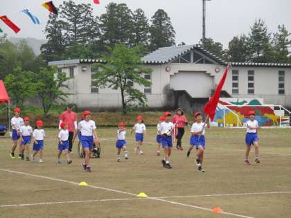 入場行進の姿勢や歌でみんなを引っ張っていました。
