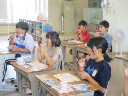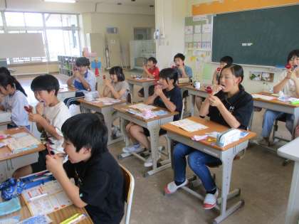 歯みがき大会に参加しました。歯ブラシやデンタルフロスの使い方を学び、実際にやってみました。