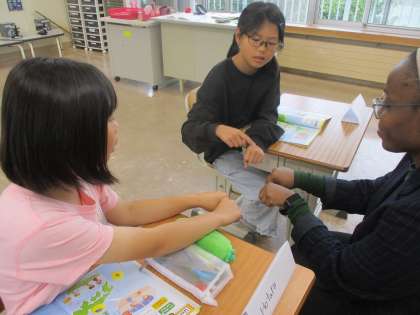 ALTと一緒に英語の歌に合わせて手遊びを楽しみました。