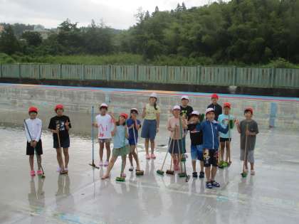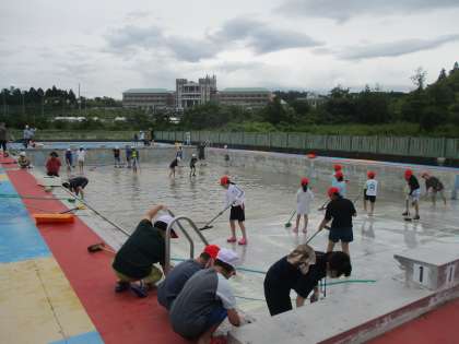 大プール、小プールの掃除をがんばりました。きれいになったプールで泳ぐのが楽しみです。