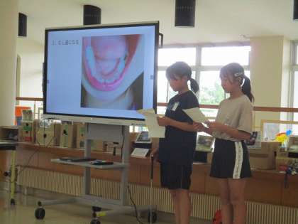 歯に関するクイズをしたり、むし歯の恐ろしさや正しい歯みがきについて紹介したりしました。