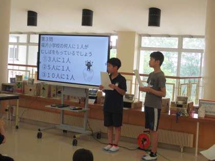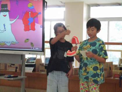 「歯キレイキレイ集会」を行いました。委員会の子ども達が、どうしたら虫歯がなくなるかを話し合い、クイズや動画でみんなに理解してもらうことができるよう、一生懸命伝えました。
