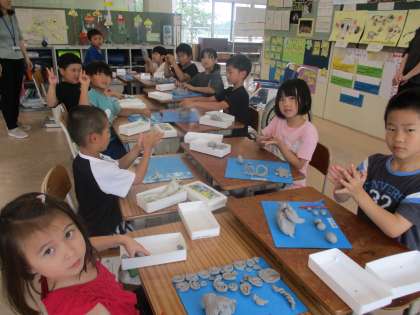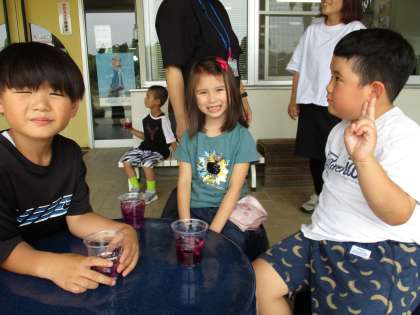 1・2年 ありがとう 公開日 2023/07/18 更新日 2023/07/18 学校 アメリカからきた友達と、生活科で「あさがおのいろみず」や、図工で「ひもひもねんど」を一緒につくりました。アメリカでの生活の様子を紹介してもらいました。 3週間の体験入学を終え、アメリカに戻るけれど「仲良くなって楽しかったね。」 最後に感謝の気持ちを込めて、みんなで「いのちの歌」と「あしたは晴れる」の歌のプレゼントをしました。「ありがとう。またあおうね。」