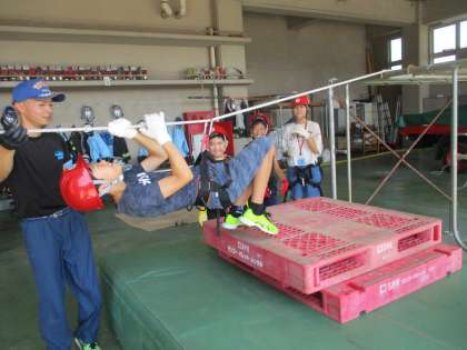 「B・F・Cのつどい」では、日程の説明を受けた後、準備運動をしてから、様々なことを体験しました。