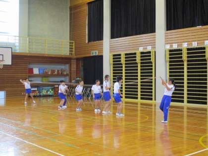 運動クラブは、大縄を20回連続で飛ぶことに挑戦しました。