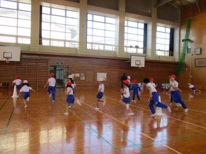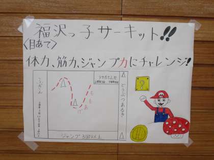 今日の早朝運動では、健康委員会で考えた「福沢っ子サーキット」を行いました。