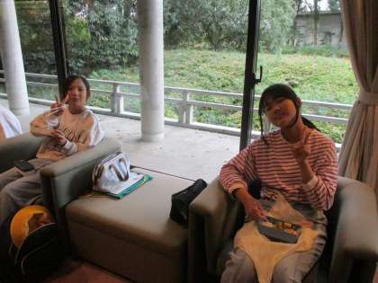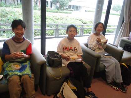 風が強かったので、お昼は能楽堂でお弁当を食べました。