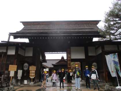 高山陣屋の前でも「はい、チーズ!」特に6年生は社会で学習したことが見られて感動していました。