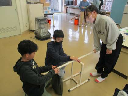 てこのはたらきの実験をしました。