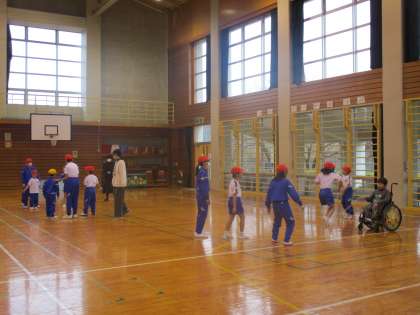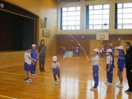 なかよし班ごとに、大縄跳びをしました。