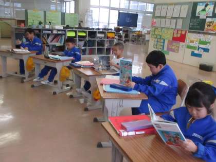 月曜のパワーアップタイムは読書です。それぞれ落ち着いて、借りた本を読んでいます。