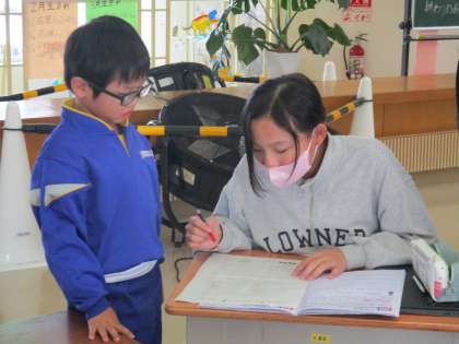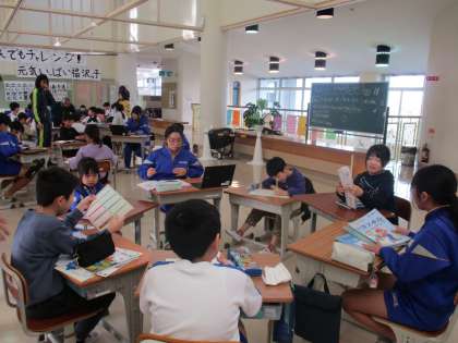 第1回チャレンジ!!勉強会 その1 公開日 2023/12/19 更新日 2023/12/19 学校 上学年の提案で、福沢っ子のチャレンジ度をアップするため、全校児童みんなで勉強会を行いました。 中央ワークスペースになかよし班(縦割り班)ごとに集まり、算数の学習をしました。