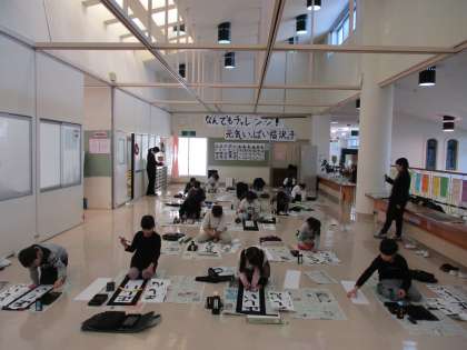 始業式後、書初大会を実施しました。 冬休み中の成果を発揮して、力強い字を書くことができました。