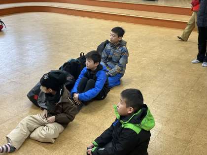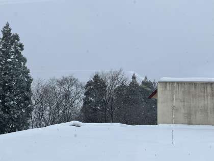 国立立山青少年自然の家に到着 福沢は雨でしたが、雪が降っています。