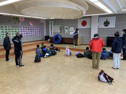 国立立山青少年自然の家に到着 福沢は雨でしたが、雪が降っています。