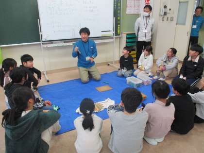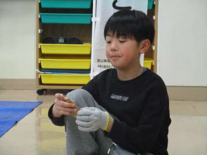 富山市野外教育活動センターと富山県呉羽青少年自然の家から講師の方々をお招きし、クラフト体験を行いました。