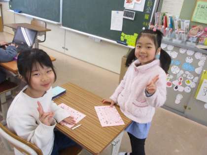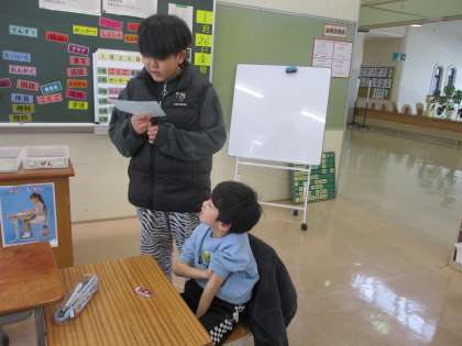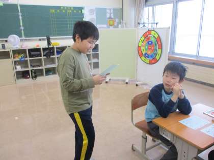 今日は、4・5年生教室に、1年生が「いいこと見つけ」を伝えに来てくれました。4・5年生も他の教室に伝えに行きました。
