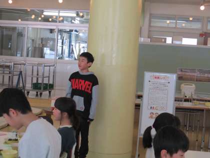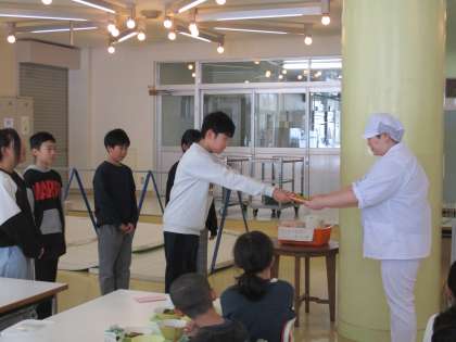 給食を食べる前に、日頃お世話になっている調理員さん方に、福沢っ子みんなで書いた感謝の手紙を渡しました。いつもおいしい給食をつくってくださり、ありがとうございます。