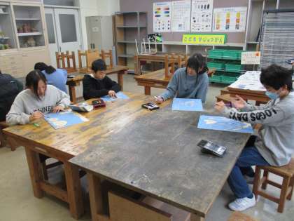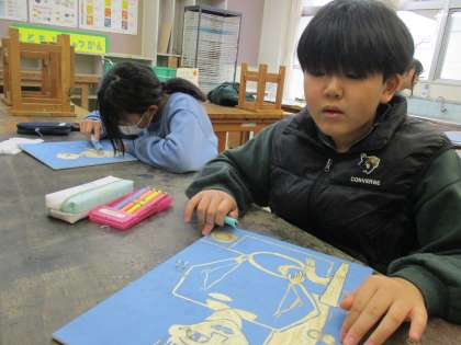 図工では、版画を彫っています。作品の仕上がりが楽しみです。
