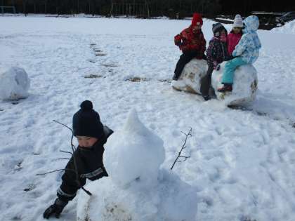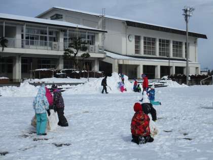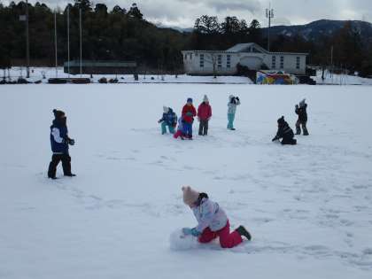 グラウンドに出て雪遊びをしました。 大きな雪だるまを作ったり、雪山を登ったりと楽しみました。