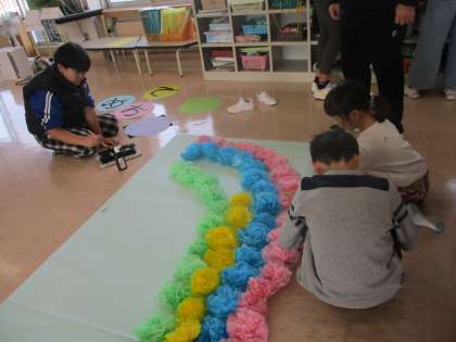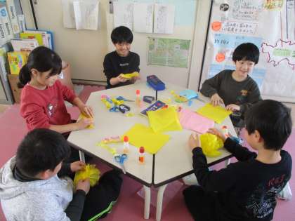 卒業お祝い掲示 公開日 2024/02/16 更新日 2024/02/16 学校 5年生が中心となって卒業をお祝いする掲示物をつくっています。今日は、下学年も一緒に活動をしました。感謝の気持ちが伝わるように一生懸命を花を折りました。