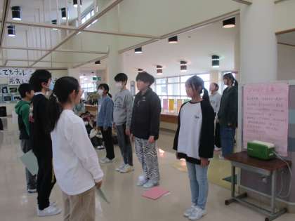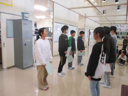 児童会引き継ぎ式を行いました。6年生からバトンを受け取った5年生。新リーダーになれるよう頑張ります。