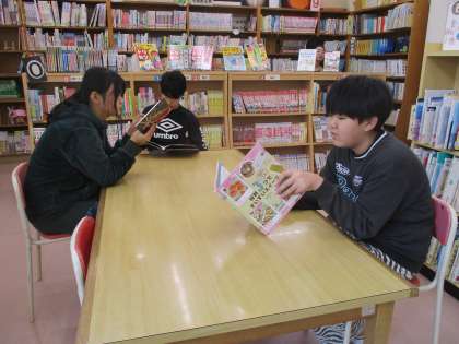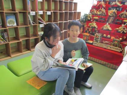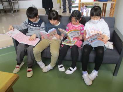 給食準備の待ち時間に読書をしています。みんなぞれぞれ自分の読みたい本を見つけて、読書を楽しんでします。