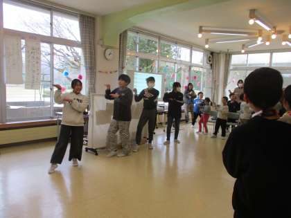 5年生 6年生おめでどう集会 公開日 2024/03/04 更新日 2024/03/04 学校 6年生に感謝の気持ちを伝えようと、集会の準備をがんばってきた5年生。司会進行も自分たちの発表も自信をもって堂々とする姿は、立派でした。全校のみんなが嬉しく楽しい集会になり、5年生の子供たちも大満足でした。