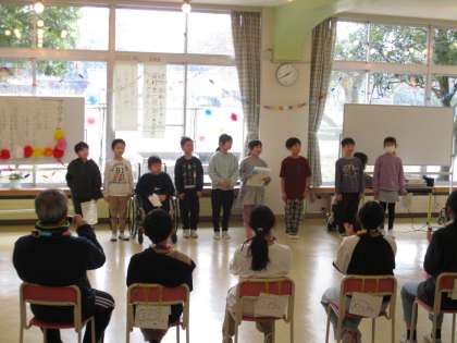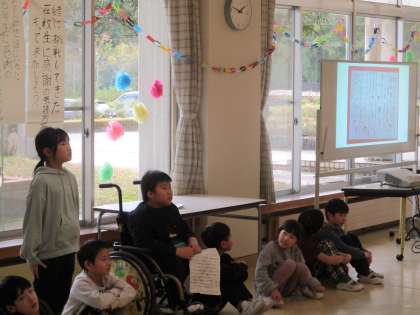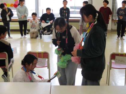 2・3年生は、宝探しと6年生への感謝の気持ちを込めてつくった詩のプレゼントをしました。