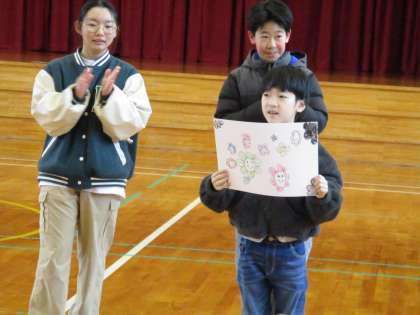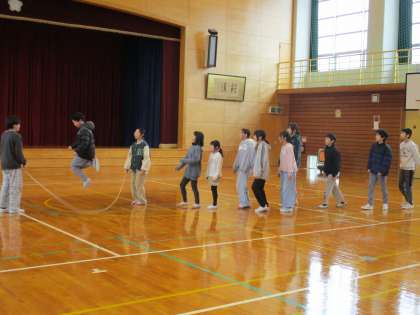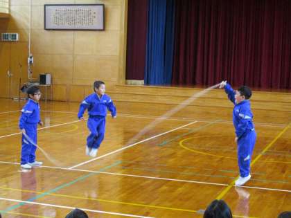 縄跳びや絵の披露、八の字跳びに挑む様子です。