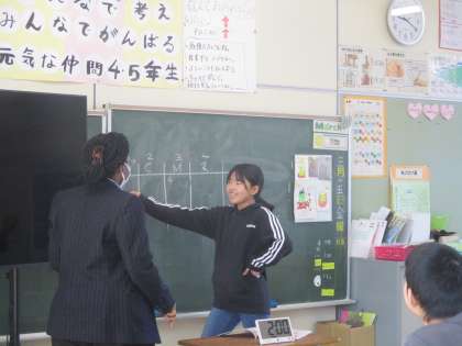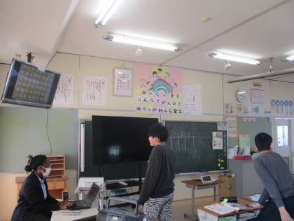 ポインティングゲームをしました。ALTとは英語で会話をしながら楽しく学習している子供たちです。