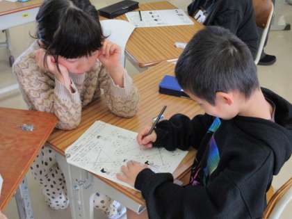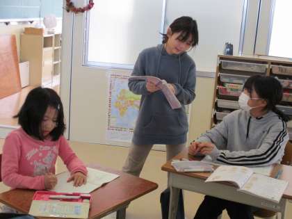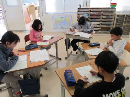 1年生から5年生までのみんなで、算数科の合同学習(1年間の復習)をしました。各自で学習課題を選んで取り組みました。