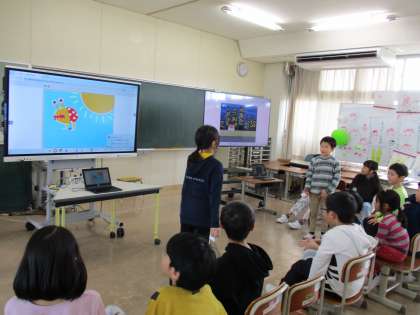 下学年 お楽しみ会2 公開日 2024/03/22 更新日 2024/03/22 学校 2・3年生のプログラム。1番はゲーム会社の「プログラミングすごろく」、2番はイラスト会社の「イラストクイズ」、3番は映画会社の「思い出スライド」です。どの出し物も自分たちで企画し、みんなが楽しめる内容でした。1年間でパワーアップしていて素晴らしいです。
