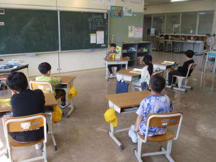 4月12日(金) 今週の1・2年生 その1 公開日 2024/04/12 更新日 2024/04/12 学校 国語の時間は音読をしています。2年生は「ふきのとう」、1年生は「はなのみち」を読んでいます。 「そんなに元気よく『ごめんね』と言うのかな?」 「『ごめんね』ってあやまるときは、どんなとき?」 「すみませんって言うように、もうしわけない気持ちでいうとか?」 「それで、読んでみよう!」 などと、みんなで聴き合いながら、音読しています。